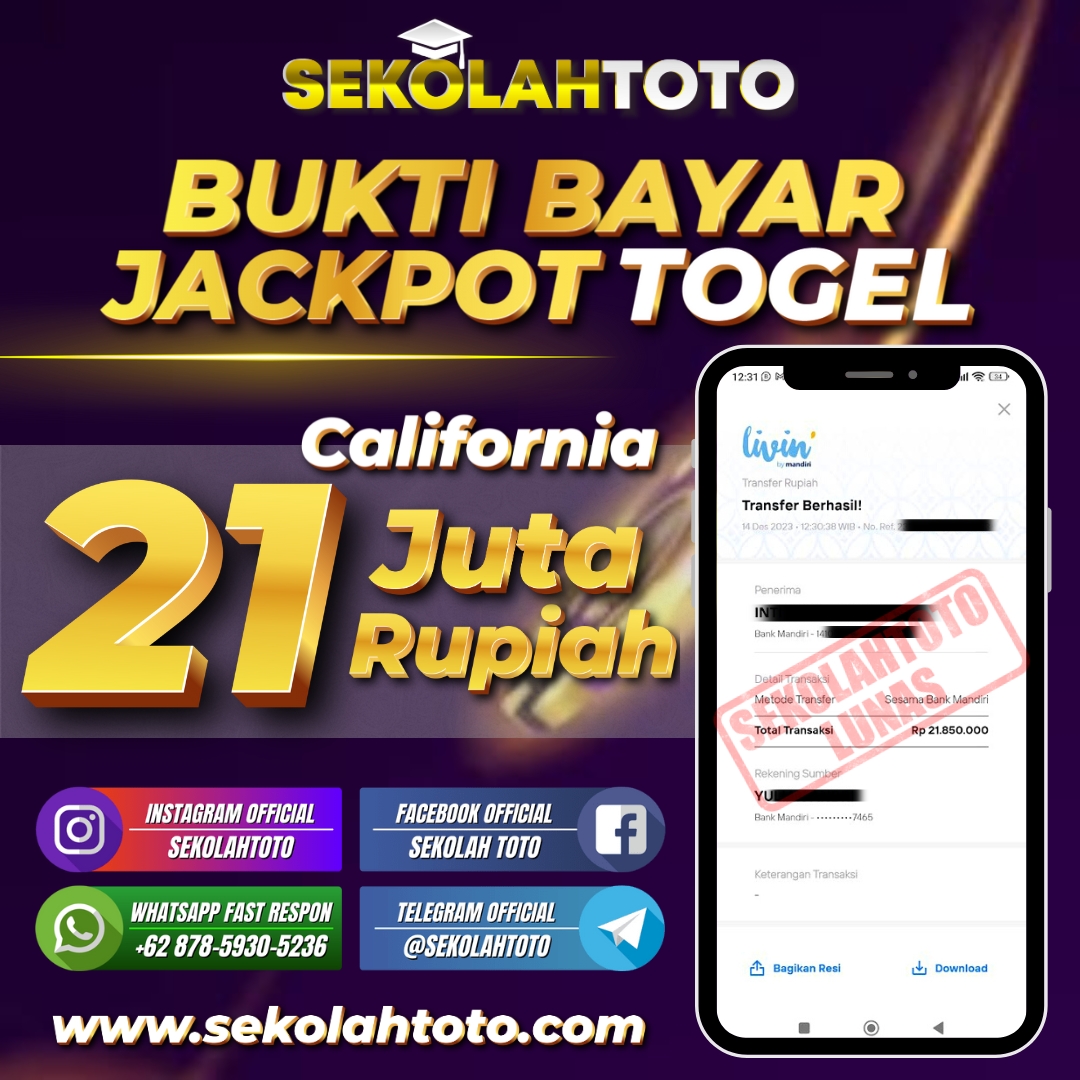 BUKTI JACKPOT PASARAN CALIFORNIA 18 Desember 2023 Posted by kepsektoto California Kamis, 14 Desember 2023 RP. 21.850.000,- Selamat Kepada Pemenang. Salam JP, Sekolahtoto ! Updated: 18 Desember 2023 at 16:01 ◀ Prediksi Togel Taiwan Loterry Hari Ini BUKTI JACKPOT SLOT GAMES ▶