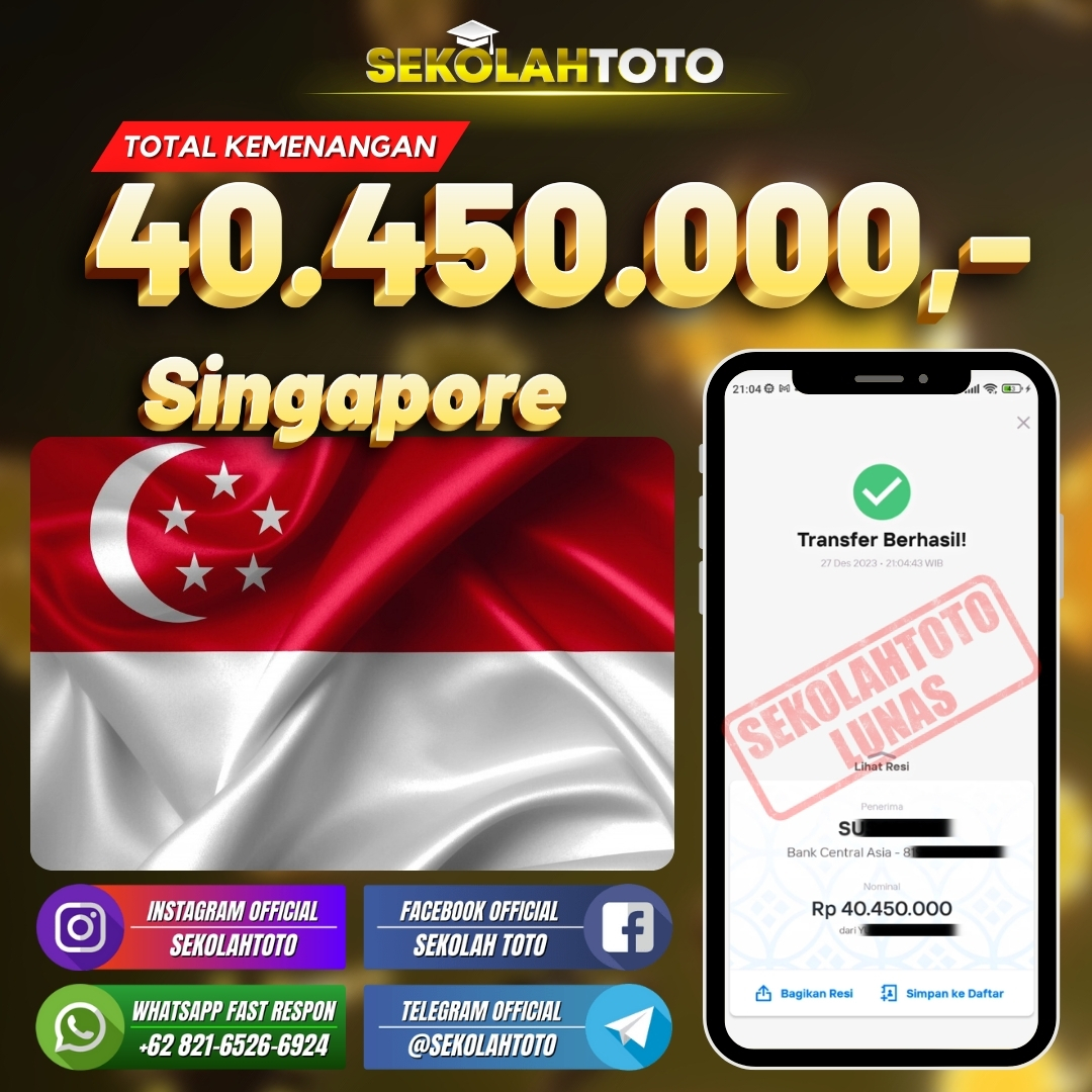 BUKTI JACKPOT PASARAN SINGAPORE 29 Desember 2023 Posted by kepsektoto Singapore Rabu, 27 Desember 2023 RP. 40.450.000,- Selamat Kepada Pemenang. Salam JP, Sekolahtoto ! Updated: 29 Desember 2023 at 15:24 ◀ BUKTI JACKPOT SLOT GAMES BUKTI JACKPOT SLOT GAMES ▶