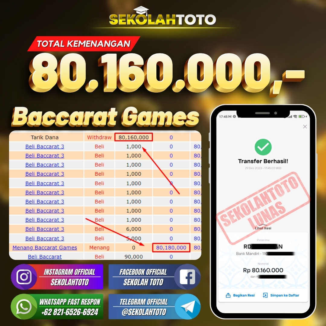 BUKTI JACKPOT LIVE CASINO 4 Januari 2024 Posted by kepsektoto Baccarat Jumat, 29 Desember 2023 RP. 80.160.000,- Selamat Kepada Pemenang. Salam JP, Sekolahtoto ! Updated: 4 Januari 2024 at 23:17 ◀ BUKTI JACKPOT LIVE CASINO BUKTI JACKPOT SLOT GAMES ▶