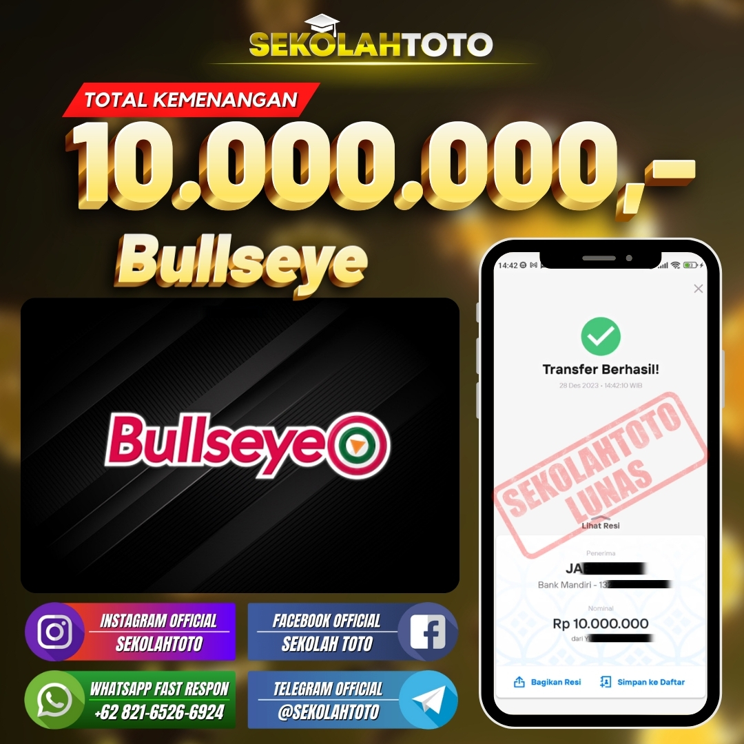 BUKTI JACKPOT PASARAN BULLSEYE 4 Januari 2024 Posted by kepsektoto Bullseye Kamis, 28 Desember 2023 RP. 10.000.000,- Selamat Kepada Pemenang. Salam JP, Sekolahtoto ! Updated: 4 Januari 2024 at 00:00 ◀ BUKTI JACKPOT PASARAN CAMBODIA BUKTI JACKPOT LIVE CASINO ▶