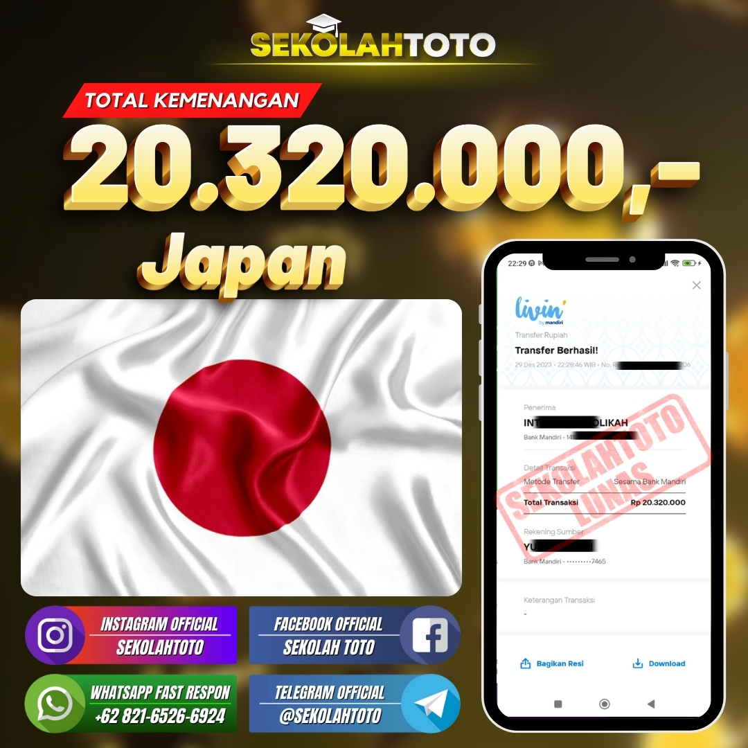BUKTI JACKPOT PASARAN JAPAN 4 Januari 2024 Posted by kepsektoto Japan Jumat, 29 Desember 2023 RP. 20.320.000,- Selamat Kepada Pemenang. Salam JP, Sekolahtoto ! Updated: 4 Januari 2024 at 23:21 ◀ BUKTI JACKPOT SLOT GAMES BUKTI JACKPOT PASARAN TOTO MACAU ▶