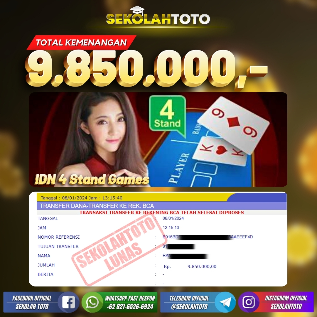 BUKTI JACKPOT LIVE CASINO 11 Januari 2024 Posted by kepsektoto IDN 4 Stand Games Senin, 08 Januari 2024 RP. 9.850.000,- Selamat Kepada Pemenang. Salam JP, Sekolahtoto ! Updated: 11 Januari 2024 at 00:20 ◀ BUKTI JACKPOT SLOT GAMES BUKTI JACKPOT SLOT GAMES ▶