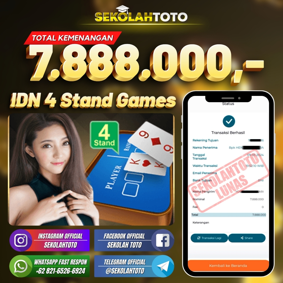 BUKTI JACKPOT LIVE CASINO 12 Januari 2024 Posted by kepsektoto IDN 4 Stand Games Selasa, 09 Januari 2024 RP. 7.888.000,- Selamat Kepada Pemenang. Salam JP, Sekolahtoto ! Updated: 12 Januari 2024 at 23:36 ◀ BUKTI JACKPOT LIVE CASINO BUKTI JACKPOT LIVE CASINO ▶