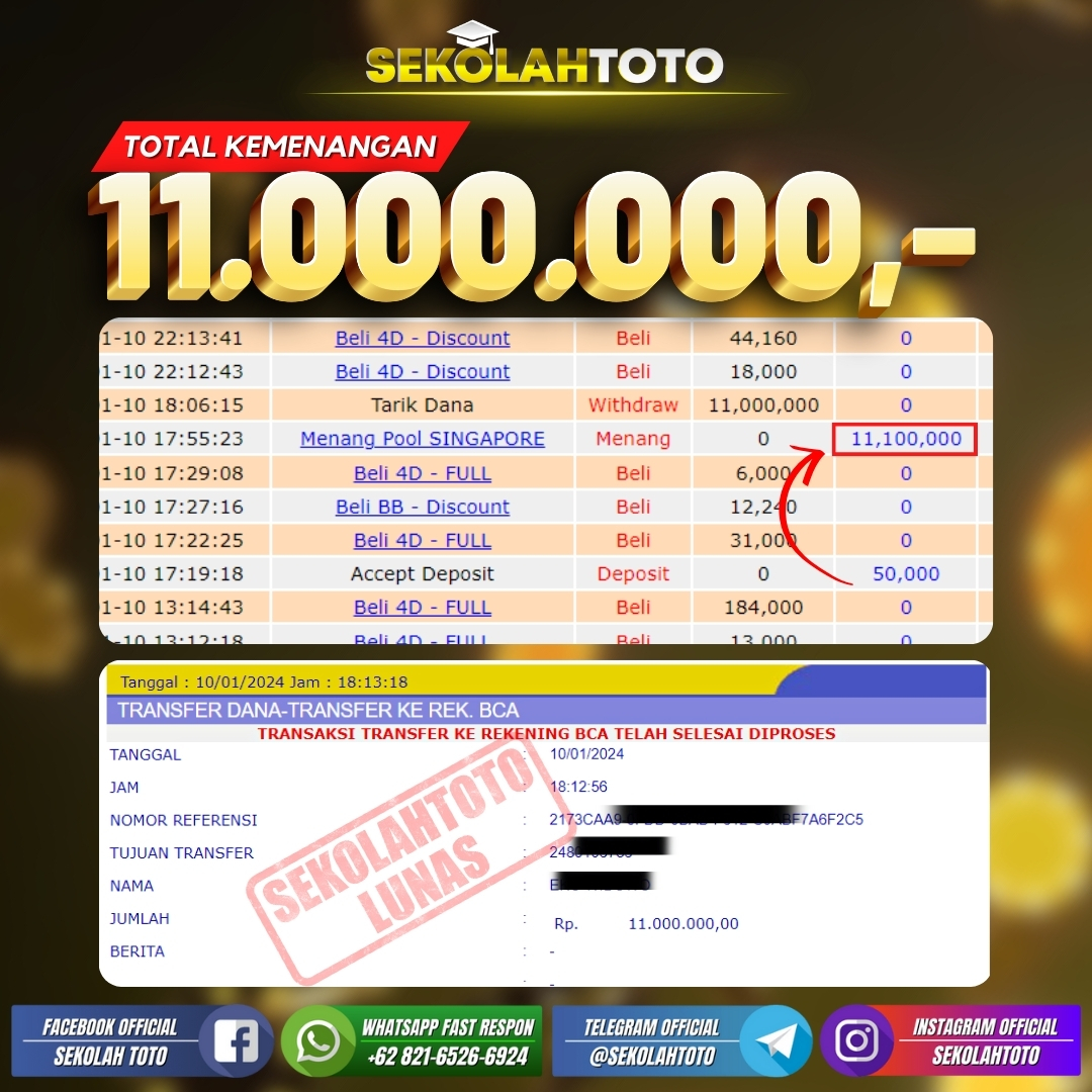 Selamat Kepada Pemenang. Salam JP, Sekolahtoto !