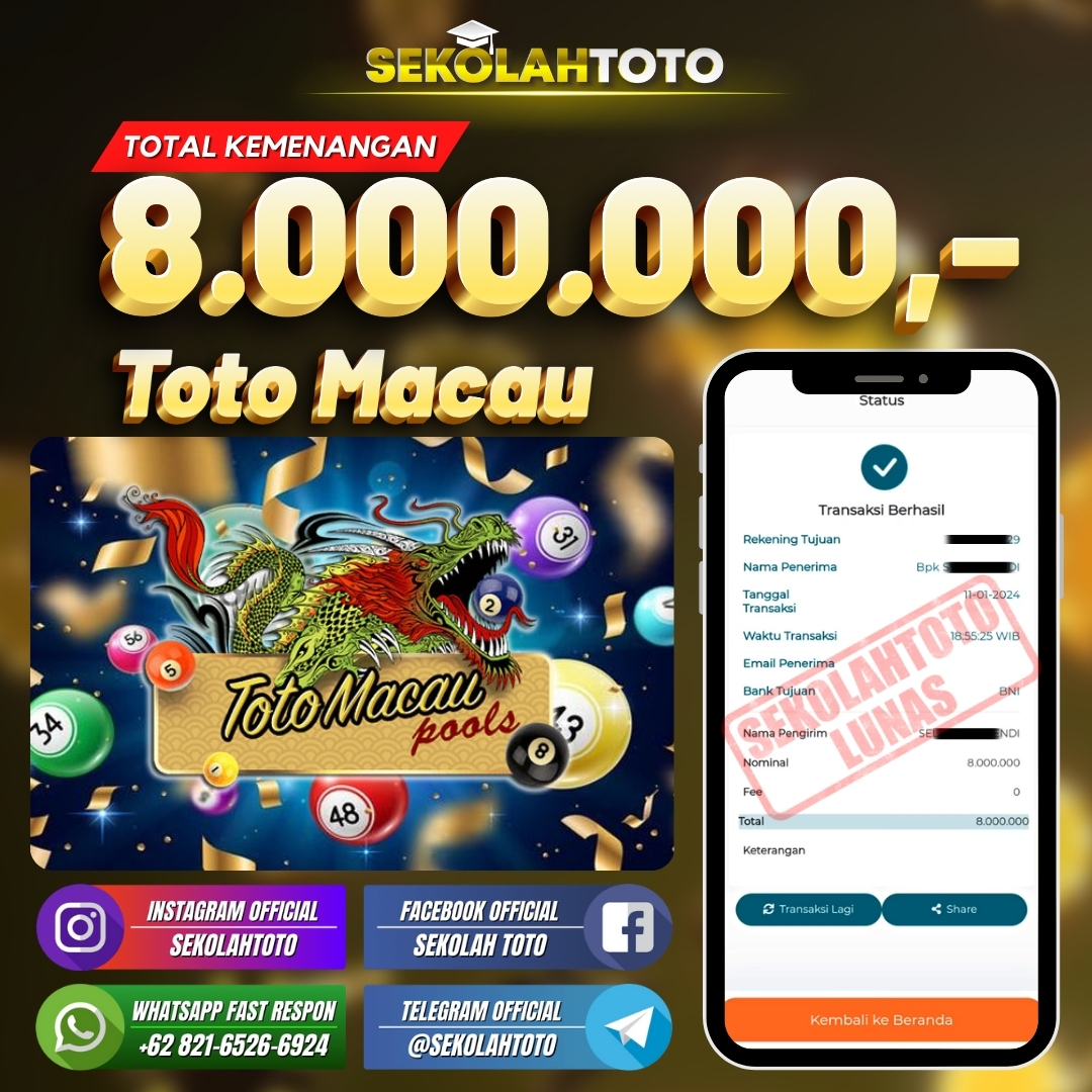 BUKTI JACKPOT PASARAN TOTO MACAU 14 Januari 2024 Posted by kepsektoto Toto Macau Kamis, 11 Januari 2024 RP. 8.000.000,- Selamat Kepada Pemenang. Salam JP, Sekolahtoto ! Updated: 14 Januari 2024 at 21:19 ◀ BUKTI JACKPOT PASARAN JAPAN BUKTI JACKPOT PASARAN TAIWAN ▶