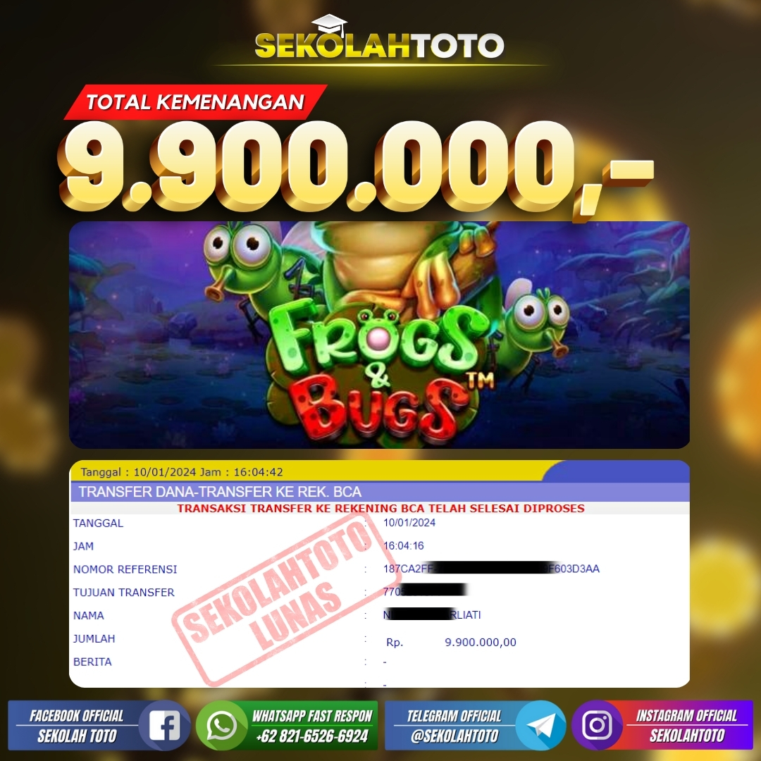BUKTI JACKPOT SLOT GAMES 14 Januari 2024 Posted by kepsektoto Frogs & Bugs Rabu, 10 Januari 2024 RP. 9.900.000,- Selamat Kepada Pemenang. Salam JP, Sekolahtoto ! Updated: 14 Januari 2024 at 20:32 ◀ BUKTI JACKPOT PASARAN SYDNEY BUKTI JACKPOT SLOT GAMES ▶