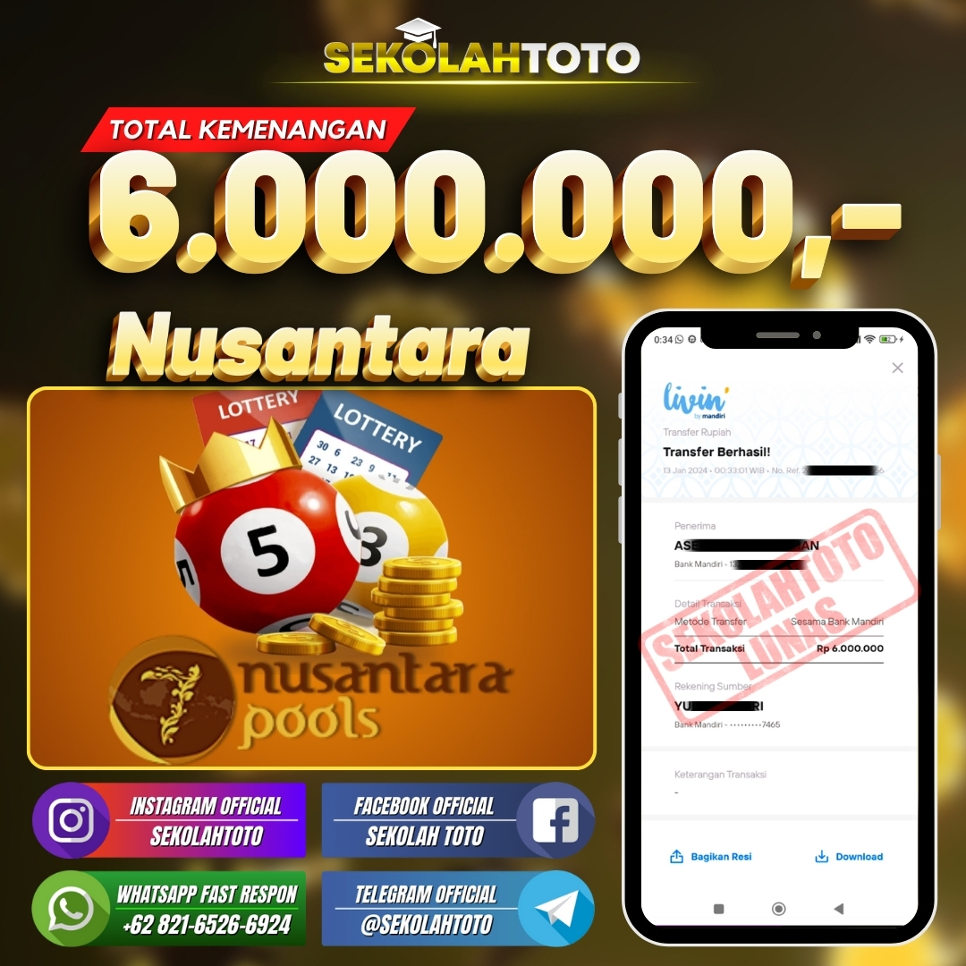 BUKTI JACKPOT PASARAN NUSANTARA 18 Januari 2024 Posted by kepsektoto Nusantara Sabtu, 13 Januari 2024 RP. 6.000.000,- Selamat Kepada Pemenang. Salam JP, Sekolahtoto ! Updated: 18 Januari 2024 at 23:35 ◀ BUKTI JACKPOT SLOT GAMES BUKTI JACKPOT SLOT GAMES ▶