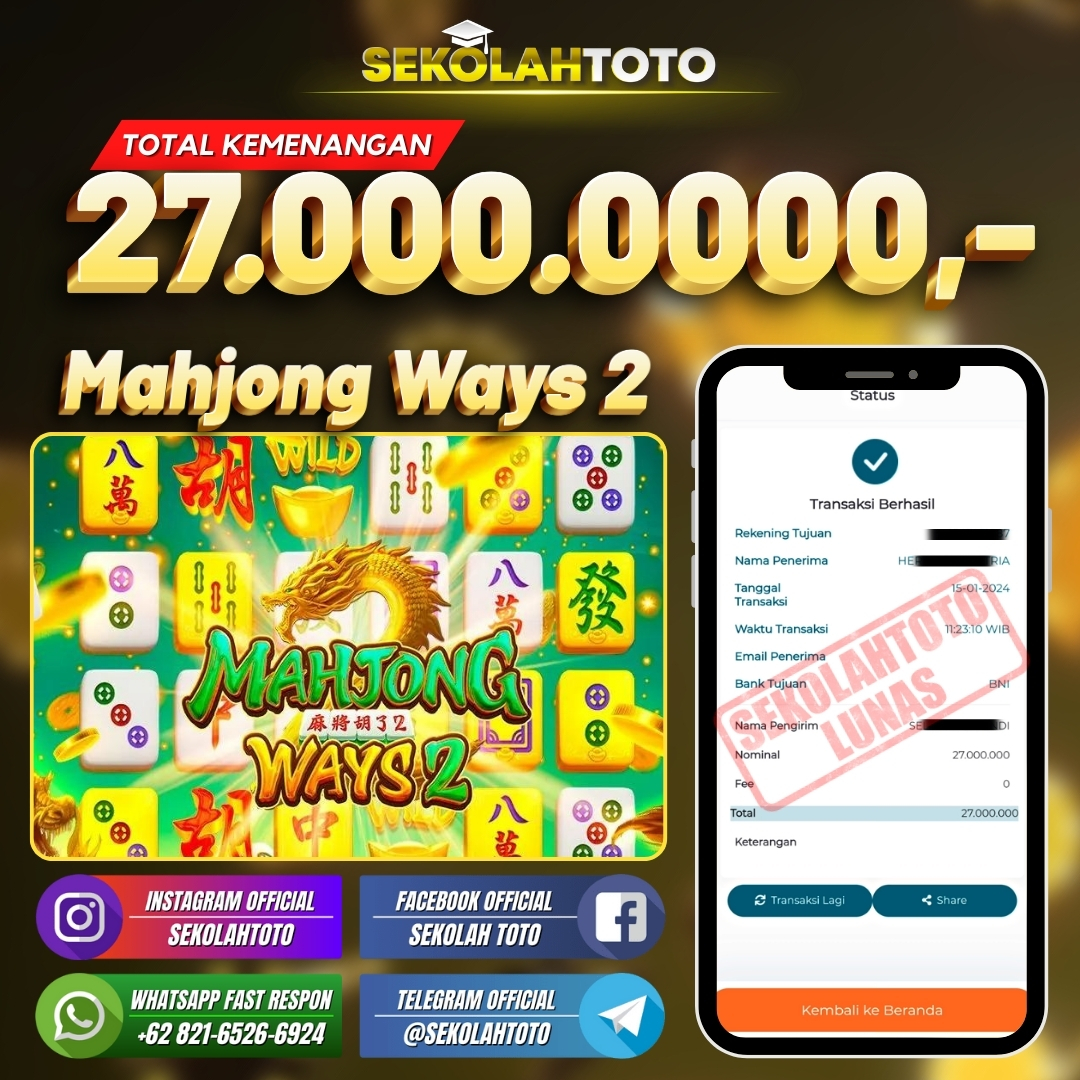 BUKTI JACKPOT SLOT GAMES 18 Januari 2024 Posted by kepsektoto Mahjong Ways 2 Senin, 15 Januari 2024 RP. 27.000.000,- Selamat Kepada Pemenang. Salam JP, Sekolahtoto ! Updated: 18 Januari 2024 at 23:42 ◀ BUKTI JACKPOT PASARAN TOTO MACAU 5D Prediksi Togel Bullseye Pools Hari Ini ▶