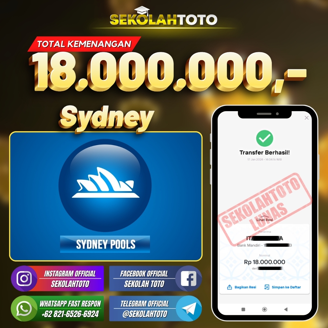 BUKTI JACKPOT PASARAN SYDNEY 21 Januari 2024 Posted by kepsektoto Sydney Rabu, 17 Januari 2024 RP. 18.000.000,- Selamat Kepada Pemenang. Salam JP, Sekolahtoto ! Updated: 21 Januari 2024 at 12:49 ◀ BUKTI JACKPOT LIVE CASINO Prediksi Togel Bullseye Pools Hari Ini ▶