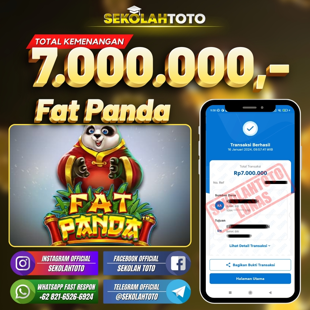 BUKTI JACKPOT SLOT GAMES 21 Januari 2024 Posted by kepsektoto Fat Panda Selasa, 16 Januari 2024 RP. 7.000.000,- Selamat Kepada Pemenang. Salam JP, Sekolahtoto ! Updated: 21 Januari 2024 at 12:43 ◀ BUKTI JACKPOT SLOT GAMES BUKTI JACKPOT SLOT GAMES ▶