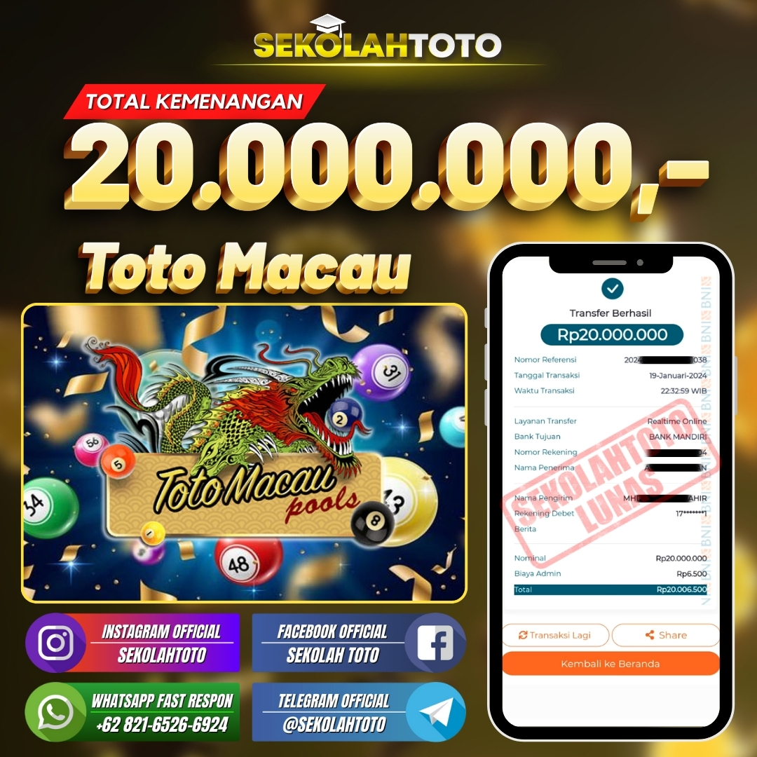 BUKTI JACKPOT PASARAN TOTO MACAU 24 Januari 2024 Posted by kepsektoto Toto Macau Jumat, 19 Januari 2024 RP. 20.000.000,- Selamat Kepada Pemenang. Salam JP, Sekolahtoto ! Updated: 24 Januari 2024 at 17:38 ◀ BUKTI JACKPOT PASARAN CAMBODIA BUKTI JACKPOT SLOT GAMES ▶