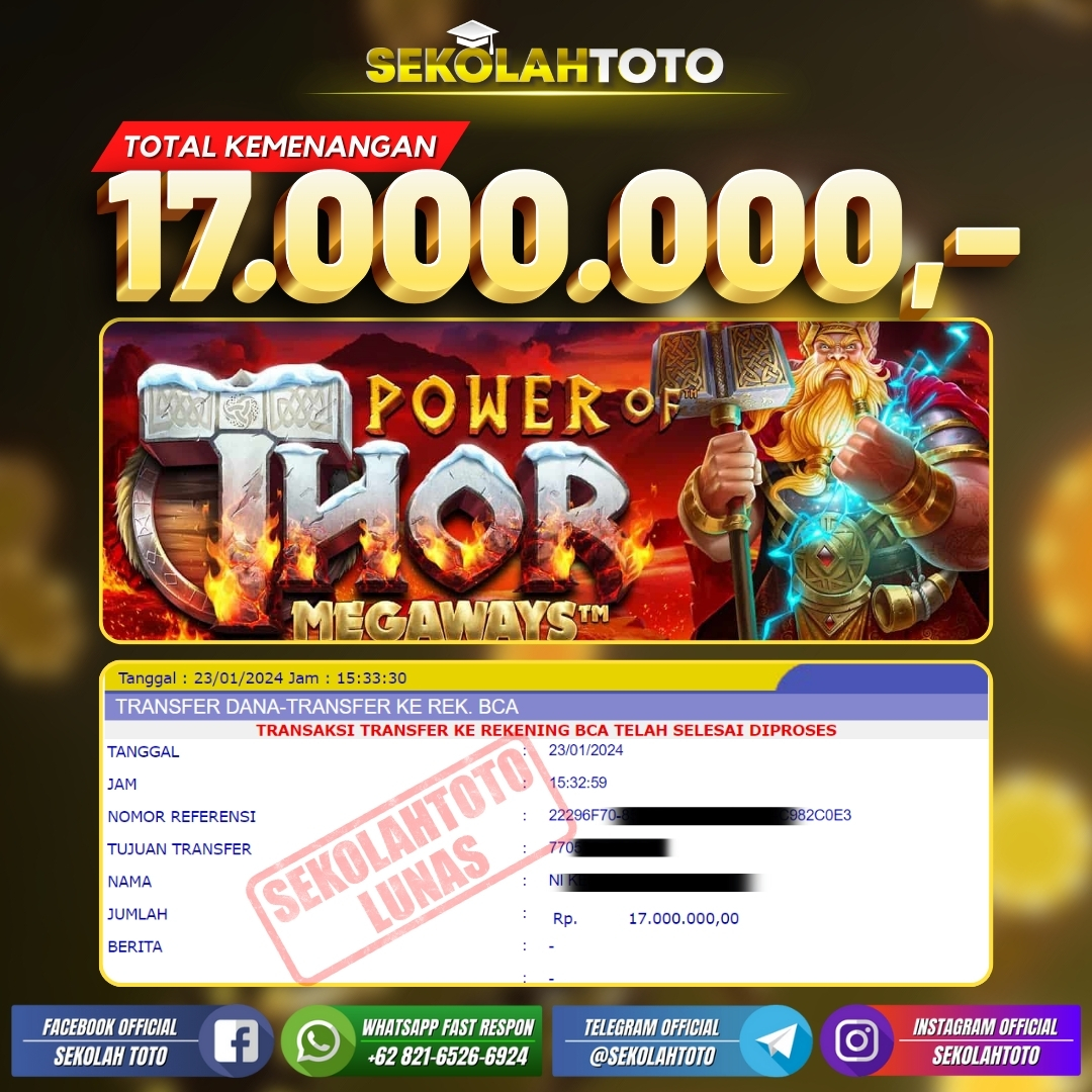 BUKTI JACKPOT SLOT GAMES 26 Januari 2024 Posted by kepsektoto Power of Thor Selasa, 23 Januari 2024 RP. 17.000.000,- Selamat Kepada Pemenang. Salam JP, Sekolahtoto ! Updated: 26 Januari 2024 at 15:43 ◀ BUKTI JACKPOT PASARAN SYDNEY BUKTI JACKPOT LIVE CASINO ▶