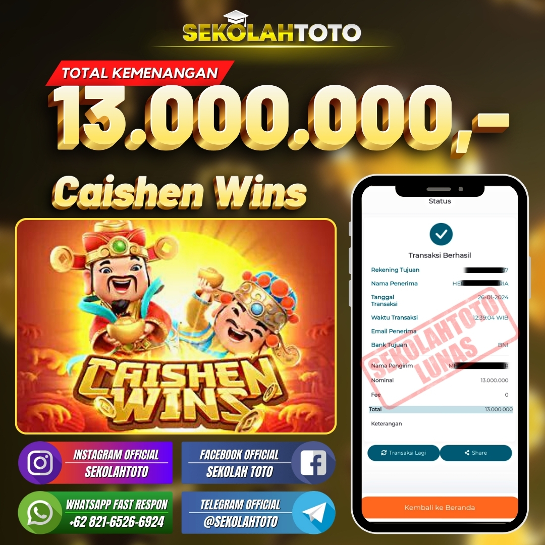 BUKTI JACKPOT SLOT GAMES 30 Januari 2024 Posted by kepsektoto Caishen Wins Jumat, 26 Januari 2024 RP. 13.000.000,- Selamat Kepada Pemenang. Salam JP, Sekolahtoto ! Updated: 30 Januari 2024 at 15:06 ◀ BUKTI JACKPOT LIVE CASINO BUKTI JACKPOT SLOT GAMES ▶