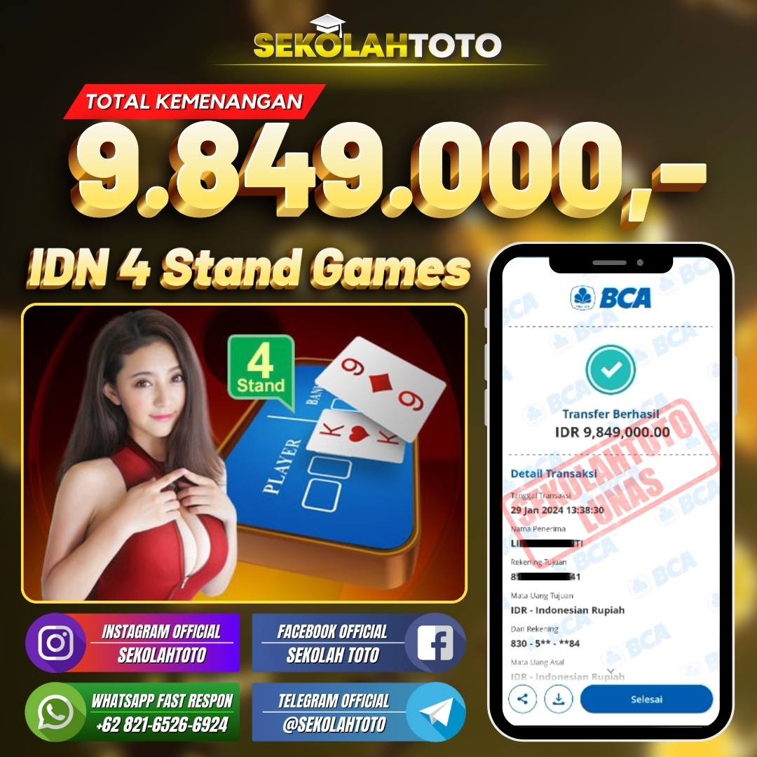 BUKTI JACKPOT LIVE CASINO 31 Januari 2024 Posted by kepsektoto IDN 4 Stand Senin, 29 Januari 2024 RP. 9.849.000,- Selamat Kepada Pemenang. Salam JP, Sekolahtoto ! Updated: 31 Januari 2024 at 22:48 ◀ BUKTI JACKPOT SLOT GAMES Prediksi Togel Bullseye Pools Hari Ini ▶