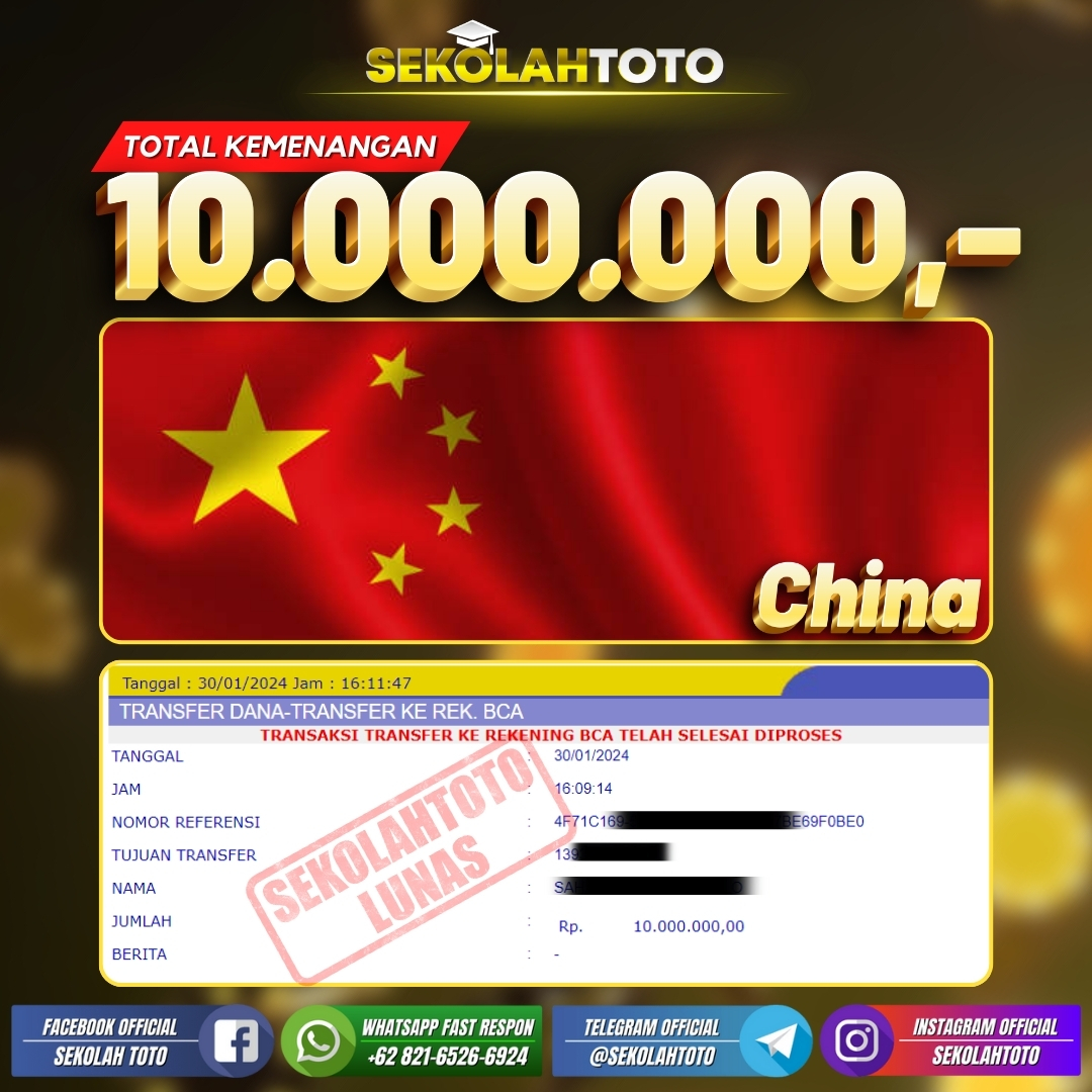 BUKTI JACKPOT PASARAN CHINA 4 Februari 2024 Posted by kepsektoto China Selasa, 30 Januari 2024 RP. 10.000.000,- Selamat Kepada Pemenang. Salam JP, Sekolahtoto ! Updated: 4 Februari 2024 at 15:02 ◀ BUKTI JACKPOT SLOT GAMES BUKTI JACKPOT PASARAN TOTO MACAU ▶