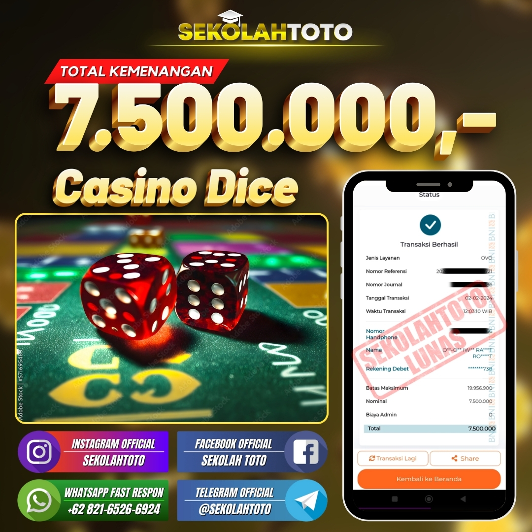 BUKTI JACKPOT LIVE CASINO 5 Februari 2024 Posted by kepsektoto Casino Dice Jumat, 02 Februari 2024 RP. 7.500.000,- Selamat Kepada Pemenang. Salam JP, Sekolahtoto ! Updated: 5 Februari 2024 at 20:23 ◀ BUKTI JACKPOT SLOT GAMES BUKTI JACKPOT PASARAN CAMBODIA ▶