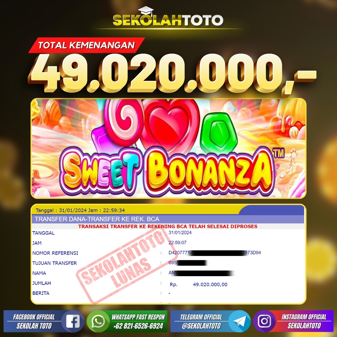 BUKTI JACKPOT SLOT GAMES 5 Februari 2024 Posted by kepsektoto Sweet Bonanza Rabu, 31 Januari 2024 RP. 49.020.000,- Selamat Kepada Pemenang. Salam JP, Sekolahtoto ! Updated: 5 Februari 2024 at 20:16 ◀ BUKTI JACKPOT LIVE CASINO BUKTI JACKPOT LIVE CASINO ▶