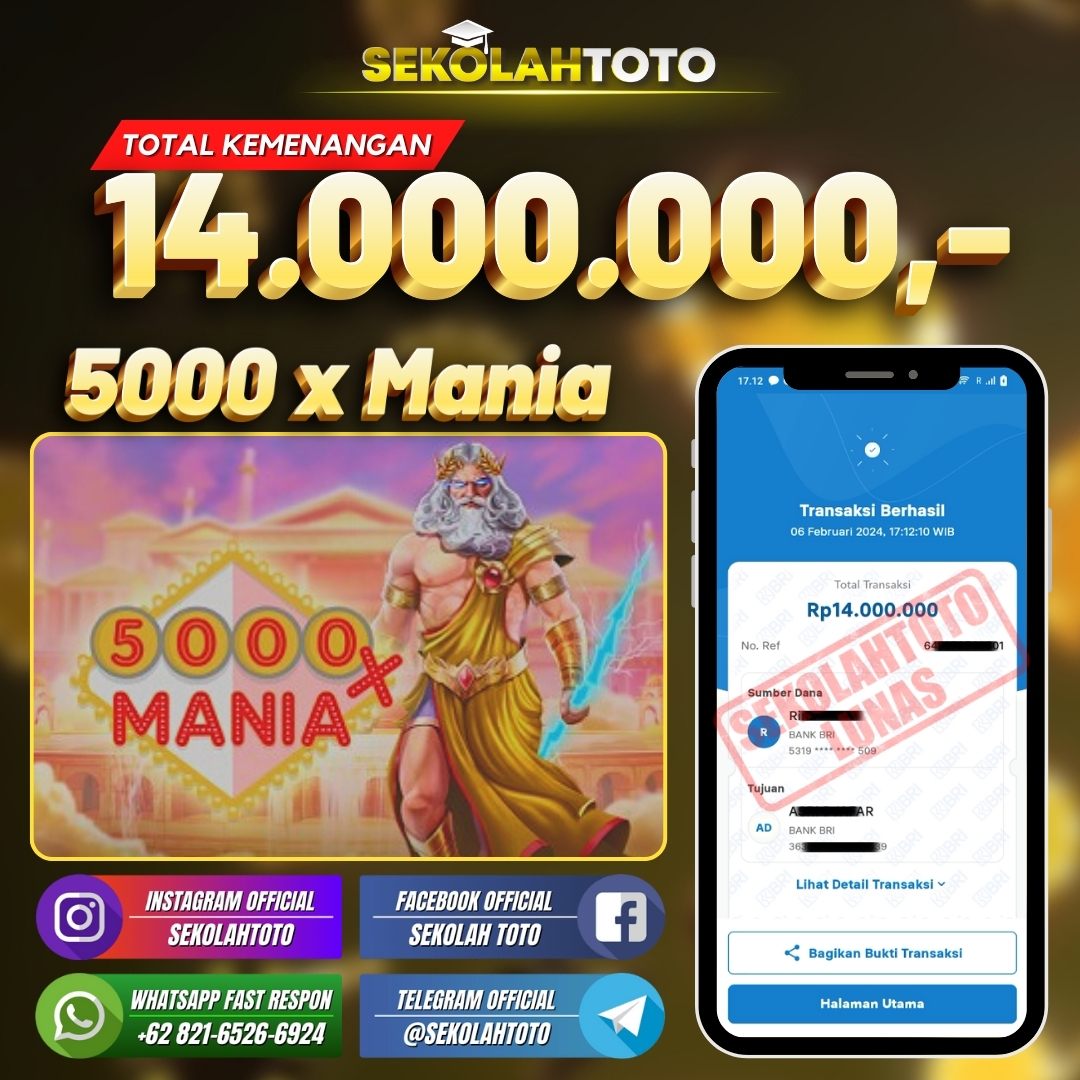 BUKTI JACKPOT SLOT GAMES 9 Februari 2024 Posted by kepsektoto 5000 x Mania Selasa, 06 Februari 2024 RP. 14.000.000,- Selamat Kepada Pemenang. Salam JP, Sekolahtoto ! Updated: 9 Februari 2024 at 23:22 ◀ BUKTI JACKPOT SLOT GAMES BUKTI JACKPOT SLOT GAMES ▶