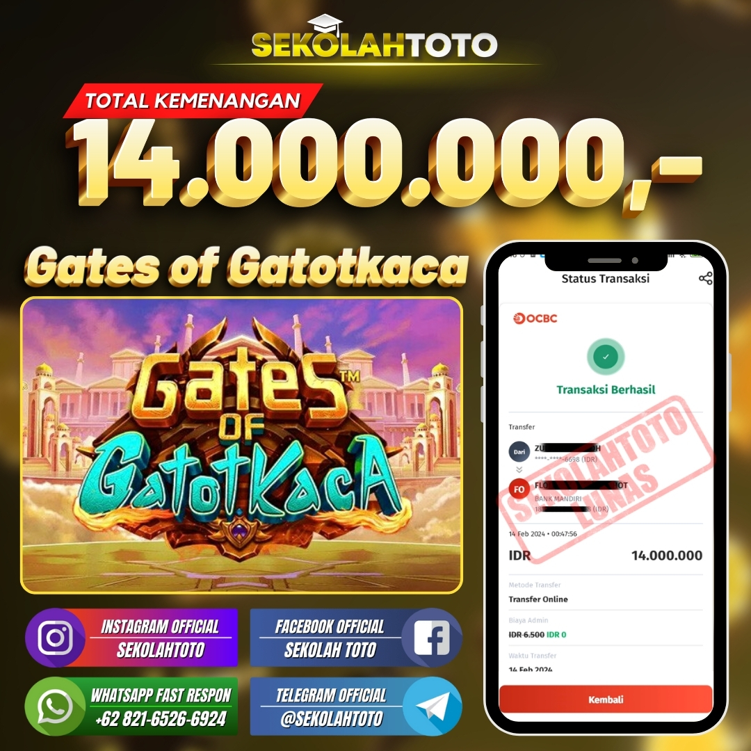BUKTI JACKPOT SLOT GAMES 19 Februari 2024 Posted by kepsektoto Gates of Gatotkaca Rabu, 14 Februari 2024 RP. 14.000.000,- Selamat Kepada Pemenang. Salam JP, Sekolahtoto ! Updated: 19 Februari 2024 at 23:16 ◀ Prediksi Togel Taiwan Loterry Hari Ini BUKTI JACKPOT SLOT GAMES ▶