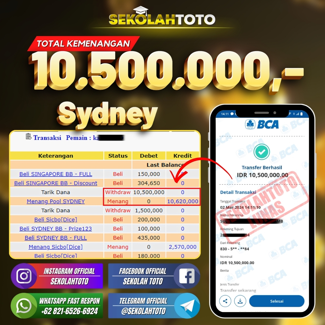 BUKTI JACKPOT PASARAN SYDNEY 2 Maret 2024 Posted by kepsektoto Sydney Sabtu, 02 Maret 2024 RP. 10.500.000,- Selamat Kepada Pemenang. Salam JP, Sekolahtoto ! Updated: 2 Maret 2024 at 18:56 ◀ BUKTI JACKPOT LIVE CASINO Prediksi Togel Bullseye Pools Hari Ini ▶