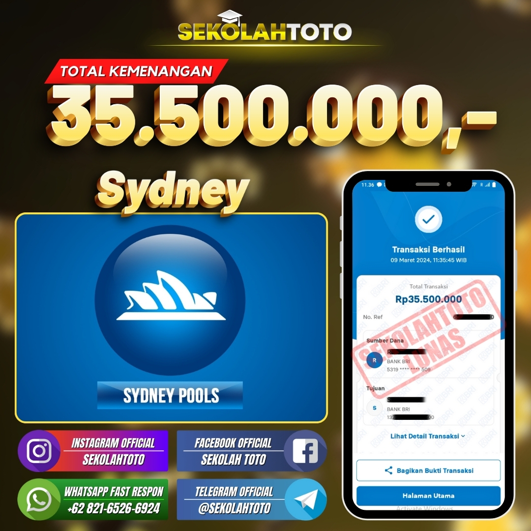 BUKTI JACKPOT PASARAN SYDNEY 13 Maret 2024 Posted by kepsektoto Sydney Sabtu, 09 Maret 2024 RP. 35.500.000,- Selamat Kepada Pemenang. Salam JP, Sekolahtoto ! Updated: 13 Maret 2024 at 23:42 ◀ BUKTI JACKPOT SLOT GAMES BUKTI JACKPOT SLOT GAMES ▶