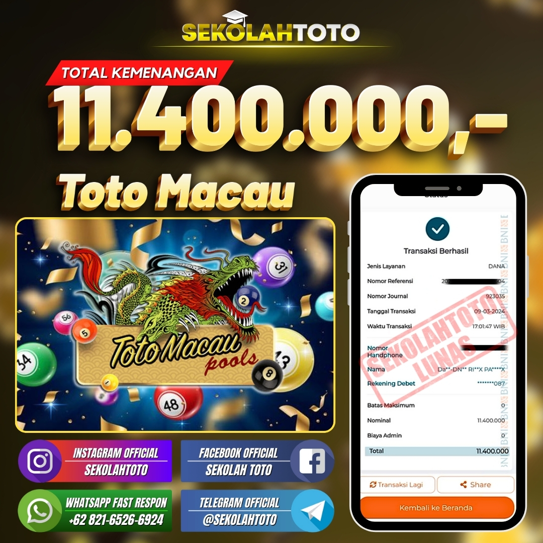 BUKTI JACKPOT PASARAN TOTO MACAU 13 Maret 2024 Posted by kepsektoto Toto Macau Sabtu, 09 Maret 2024 RP. 11.400.000,- Selamat Kepada Pemenang. Salam JP, Sekolahtoto ! Updated: 13 Maret 2024 at 23:44 ◀ BUKTI JACKPOT SLOT GAMES BUKTI JACKPOT PASARAN ARAB SAUDI ▶