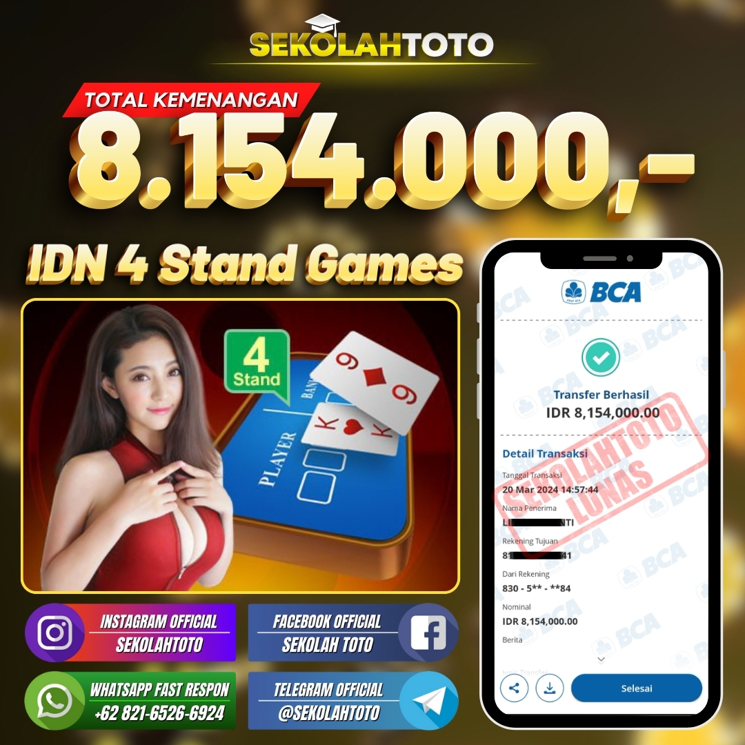 BUKTI JACKPOT LIVE CASINO 25 Maret 2024 Posted by kepsektoto IDN 4 Stand Games Rabu, 20 Maret 2024 RP. 8.154.000,- Selamat Kepada Pemenang. Salam JP, Sekolahtoto ! Updated: 25 Maret 2024 at 23:36 ◀ BUKTI JACKPOT SLOT GAMES BUKTI JACKPOT SLOT GAMES ▶