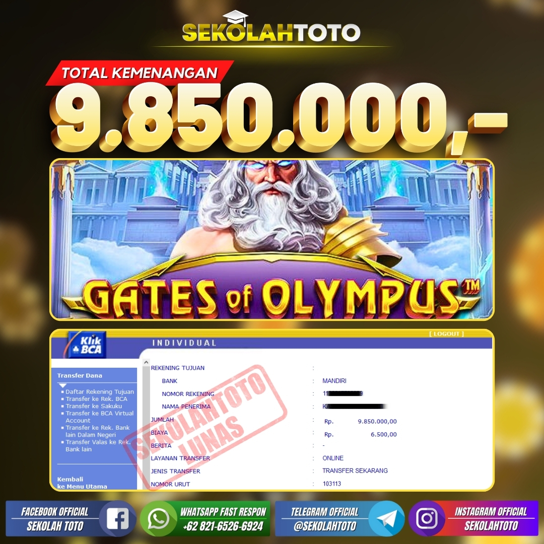 BUKTI JACKPOT SLOT GAMES 25 Maret 2024 Posted by kepsektoto Gates of Olympus Selasa, 19 Maret 2024 RP. 9.850.000,- Selamat Kepada Pemenang. Salam JP, Sekolahtoto ! Updated: 25 Maret 2024 at 23:31 ◀ BUKTI JACKPOT SLOT GAMES BUKTI JACKPOT LIVE CASINO ▶