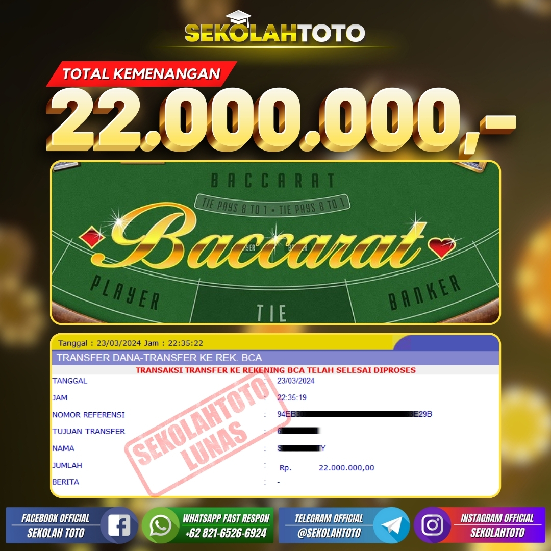 BUKTI JACKPOT LIVE CASINO 26 Maret 2024 Posted by kepsektoto Baccarat 2 Games Sabtu, 23 Maret 2024 RP. 22.000.000,- Selamat Kepada Pemenang. Salam JP, Sekolahtoto ! Updated: 26 Maret 2024 at 23:46 ◀ BUKTI JACKPOT LIVE CASINO BUKTI JACKPOT LIVE CASINO ▶