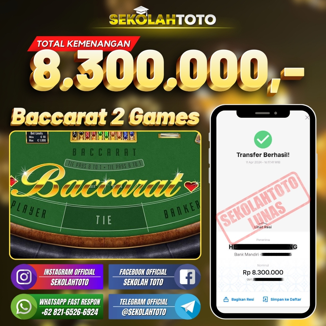 BUKTI JACKPOT LIVE CASINO 16 April 2024 Posted by kepsektoto Baccarat 2 Games Kamis, 11 April 2024 RP. 8.300.000,- Selamat Kepada Pemenang. Salam JP, Sekolahtoto ! Updated: 16 April 2024 at 23:40 ◀ BUKTI JACKPOT LIVE CASINO BUKTI JACKPOT SLOT GAMES ▶