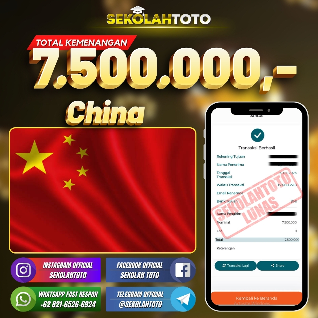 BUKTI JACKPOT PASARAN CHINA 18 April 2024 Posted by kepsektoto China Minggu, 14 April 2024 RP. 7.500.000,- Selamat Kepada Pemenang. Salam JP, Sekolahtoto ! Updated: 18 April 2024 at 23:20 ◀ Prediksi Togel Toto Macau Hari Ini BUKTI JACKPOT SLOT GAMES ▶