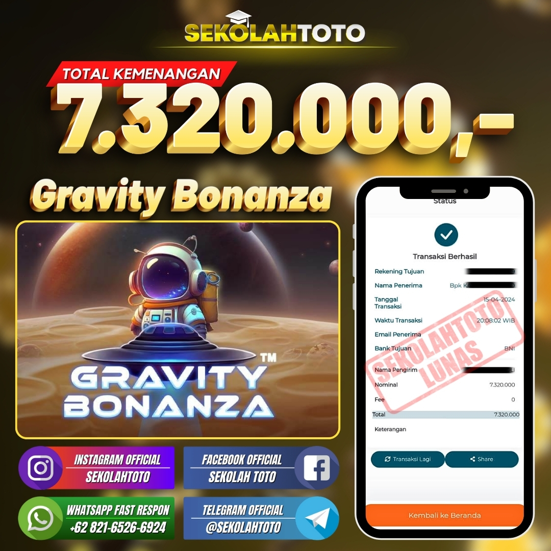 BUKTI JACKPOT SLOT GAMES 18 April 2024 Posted by kepsektoto Gravity Bonanza Senin, 15 April 2024 RP. 7.320.000,- Selamat Kepada Pemenang. Salam JP, Sekolahtoto ! Updated: 18 April 2024 at 23:24 ◀ BUKTI JACKPOT PASARAN SINGAPORE BUKTI JACKPOT SLOT GAMES ▶