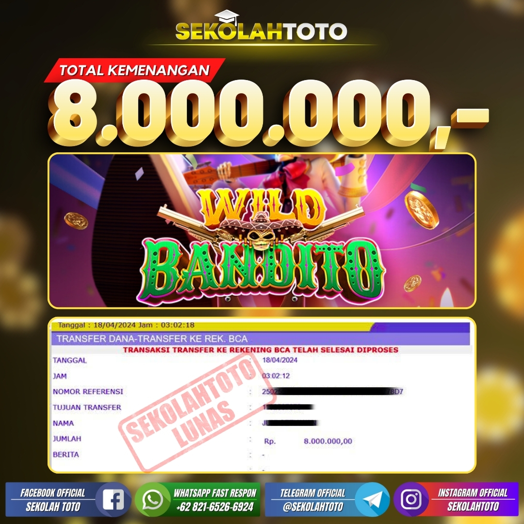 BUKTI JACKPOT SLOT GAMES 18 April 2024 Posted by kepsektoto Wild Bandito Kamis, 18 April 2024 RP. 8.000.000,- Selamat Kepada Pemenang. Salam JP, Sekolahtoto ! Updated: 18 April 2024 at 23:28 ◀ BUKTI JACKPOT LIVE CASINO Prediksi Togel Bullseye Pools Hari Ini ▶