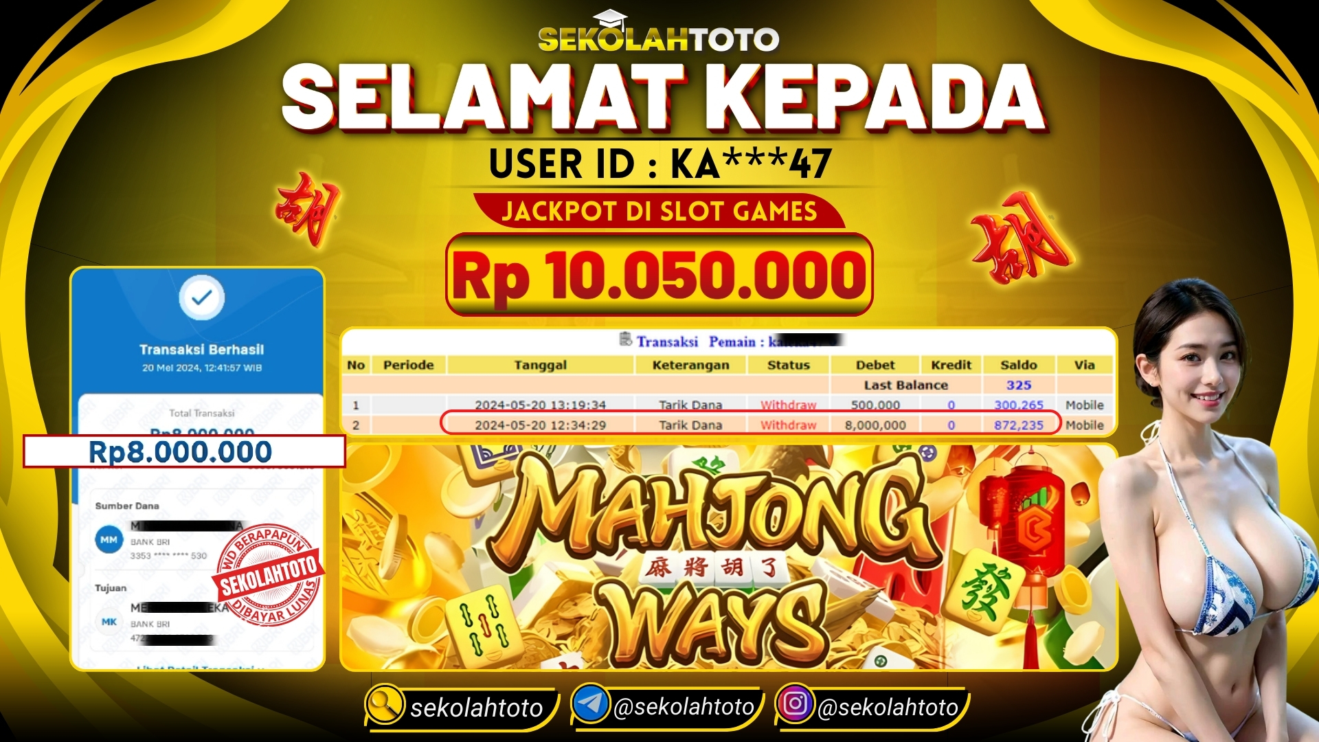 BUKTI JACKPOT SLOT GAMES 22 Mei 2024 Posted by kepsektoto Mahjong Ways Senin, 20 Mei 2024 RP. 8.000.000,- Selamat Kepada Pemenang. Salam JP, Sekolahtoto ! Updated: 22 Mei 2024 at 23:38 ◀ BUKTI JACKPOT SLOT GAMES Prediksi Togel Bullseye Pools Hari Ini ▶