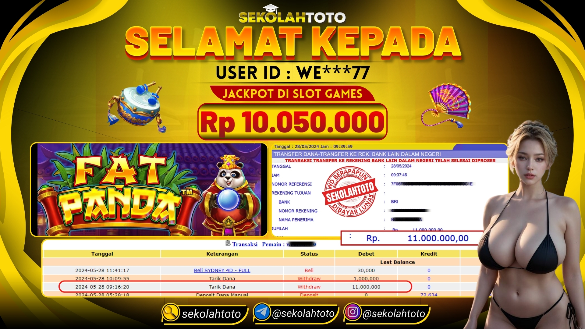 BUKTI JACKPOT SLOT GAMES 28 Mei 2024 Posted by kepsektoto Fat Panda Selasa, 28 Mei 2024 RP. 11.000.000,- Selamat Kepada Pemenang. Salam JP, Sekolahtoto ! Updated: 28 Mei 2024 at 23:27 ◀ BUKTI JACKPOT LIVE CASINO BUKTI JACKPOT SLOT GAMES ▶