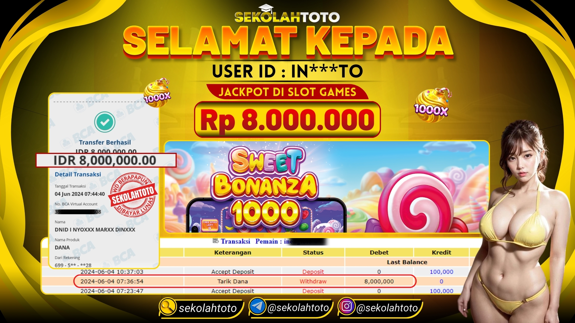 BUKTI JACKPOT SLOT GAMES 4 Juni 2024 Posted by kepsektoto Sweet Bonanza 1000 Selasa, 04 Juni 2024 RP. 8.000.000,- Selamat Kepada Pemenang. Salam JP, Sekolahtoto ! Updated: 4 Juni 2024 at 20:37 ◀ BUKTI JACKPOT PASARAN HONGKONG BUKTI JACKPOT SLOT GAMES ▶