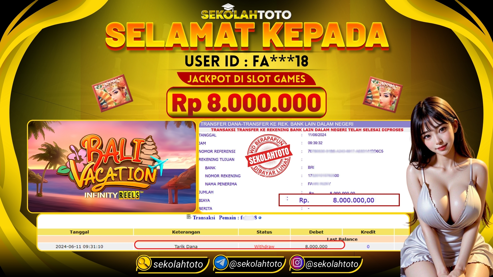 BUKTI JACKPOT SLOT GAMES 11 Juni 2024 Posted by kepsektoto Bali Vacation Selasa, 11 Juni 2024 RP. 8.000.000,- Selamat Kepada Pemenang. Salam JP, Sekolahtoto ! Updated: 11 Juni 2024 at 23:31 ◀ BUKTI JACKPOT SLOT GAMES Prediksi Togel Bullseye Pools Hari Ini ▶