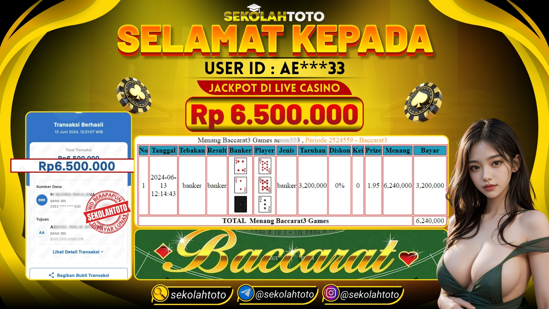 BUKTI JACKPOT LIVE CASINO 14 Juni 2024 Posted by kepsektoto Baccarat 3 Games Kamis, 13 Juni 2024 RP. 6.500.000,- Selamat Kepada Pemenang. Salam JP, Sekolahtoto ! Updated: 14 Juni 2024 at 22:34 ◀ BUKTI JACKPOT LIVE CASINO BUKTI JACKPOT PASARAN SYDNEY ▶