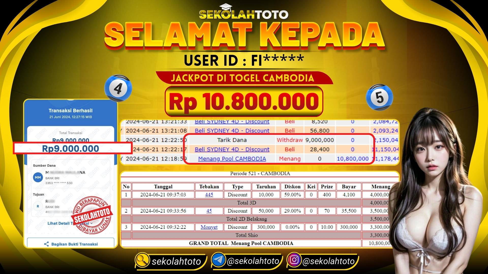 BUKTI JACKPOT PASARAN CAMBODIA 21 Juni 2024 Posted by kepsektoto Cambodia Jumat, 21 Juni 2024 RP. 10.800.000,- Selamat Kepada Pemenang. Salam JP, Sekolahtoto ! Updated: 21 Juni 2024 at 22:45 ◀ BUKTI JACKPOT SLOT GAMES Prediksi Togel Bullseye Pools Hari Ini ▶