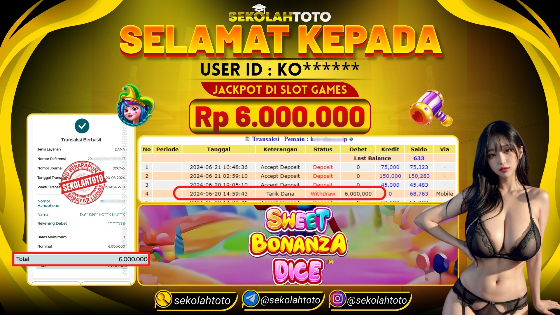 BUKTI JACKPOT SLOT GAMES 21 Juni 2024 Posted by kepsektoto Sweet Bonanza Dice Kamis, 20 Juni 2024 RP. 6.000.000,- Selamat Kepada Pemenang. Salam JP, Sekolahtoto ! Updated: 21 Juni 2024 at 22:40 ◀ BUKTI JACKPOT PASARAN CHINA BUKTI JACKPOT SLOT GAMES ▶