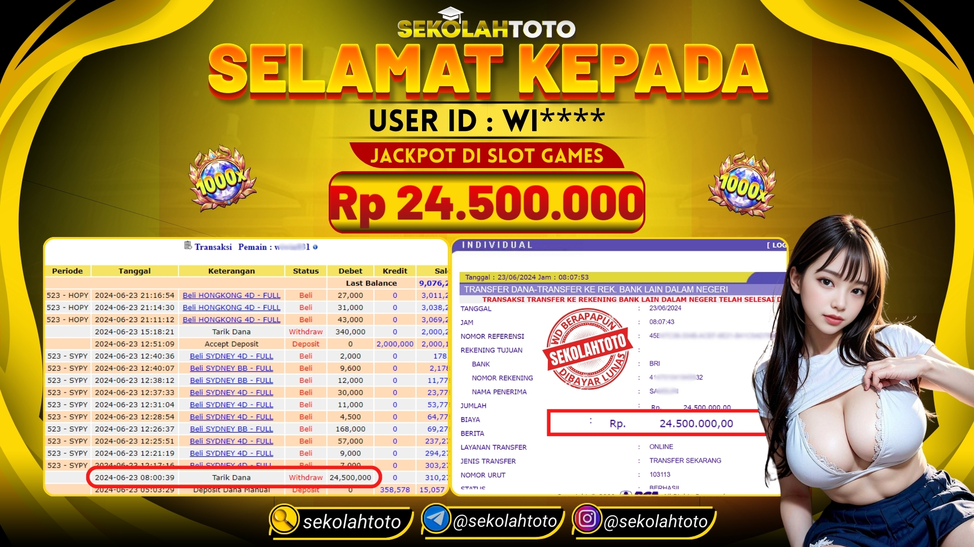 BUKTI JACKPOT SLOT GAMES 25 Juni 2024 Posted by kepsektoto Gates of Olympus 1000 Minggu, 23 Juni 2024 RP. 24.500.000,- Selamat Kepada Pemenang. Salam JP, Sekolahtoto ! Updated: 25 Juni 2024 at 01:07 ◀ BUKTI JACKPOT SLOT GAMES BUKTI JACKPOT SLOT GAMES ▶