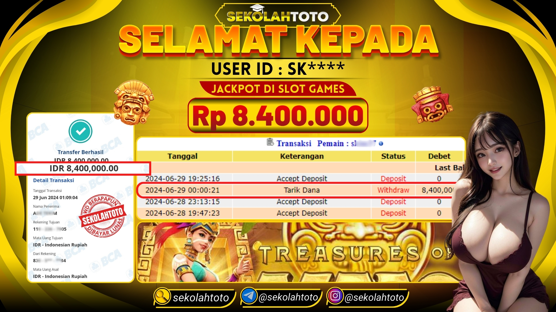 BUKTI JACKPOT SLOT GAMES 29 Juni 2024 Posted by kepsektoto Treasures of Aztec Sabtu, 29 Juni 2024 RP. 8.400.000,- Selamat Kepada Pemenang. Salam JP, Sekolahtoto ! Updated: 29 Juni 2024 at 21:34 ◀ BUKTI JACKPOT SLOT GAMES BUKTI JACKPOT LIVE CASINO ▶