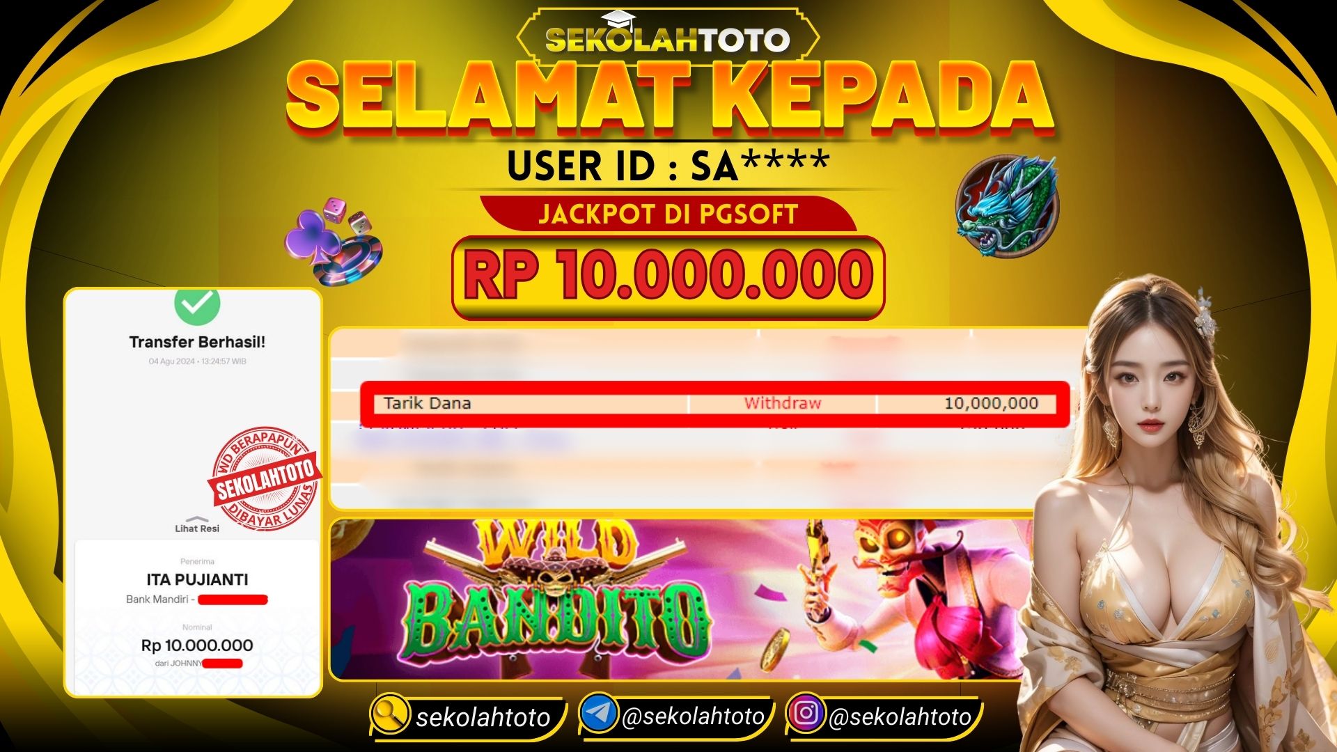 BUKTI PEMBAYARAN JACKPOT SLOT 5 Agustus 2024 Posted by kepsektoto WILD BANDITO ( PGSOFT) Senin, 05 Agustus 2024 RP. 10,000,000,- Selamat Kepada Pemenang. Salam JP, Sekolahtoto ! Updated: 5 Agustus 2024 at 19:26 ◀ Prediksi Togel Toto Macau Hari Ini BUKTI PEMBAYARAN JACKPOT TOGEL ▶