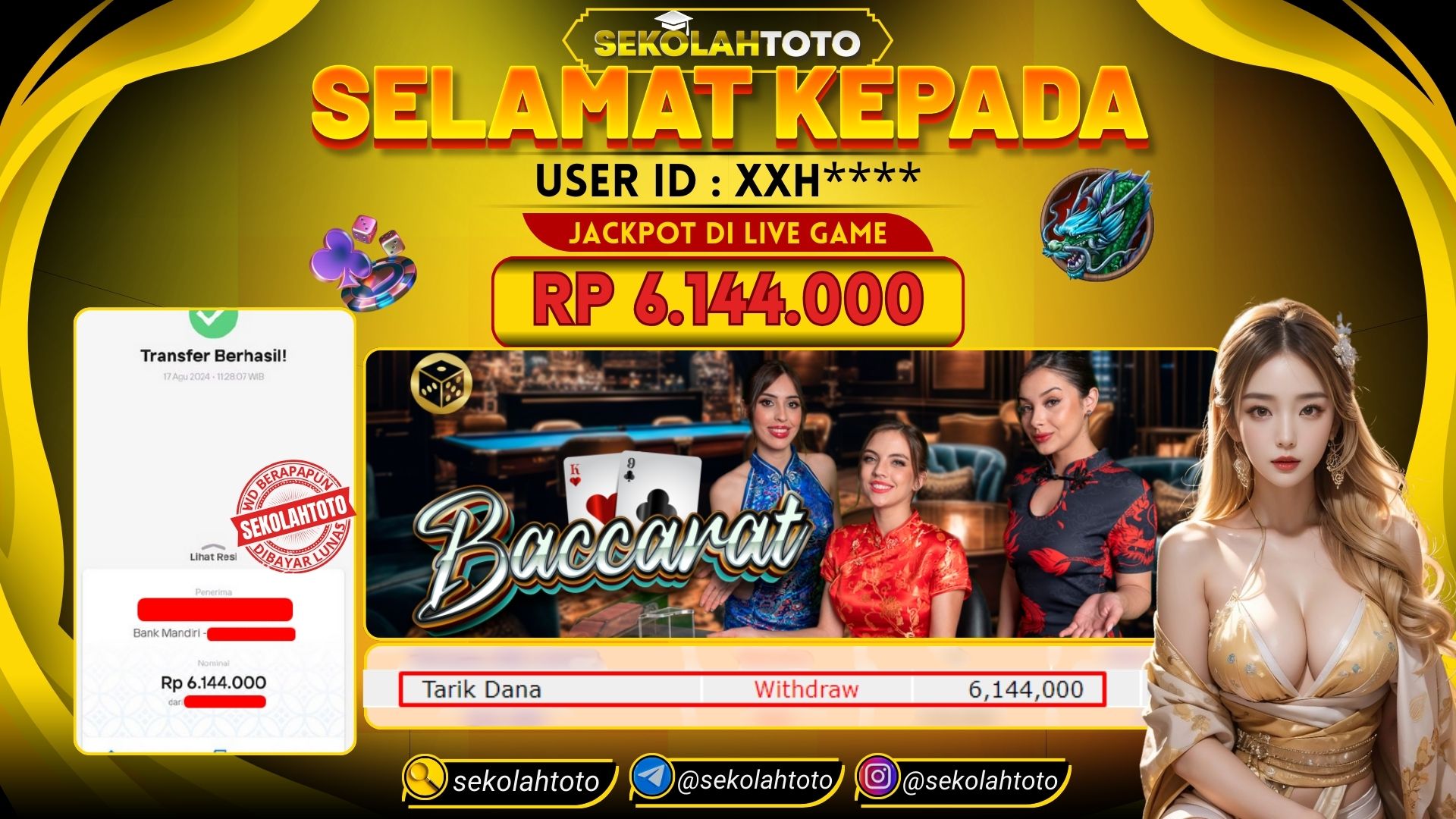 BUKTI PEMBAYARAN JACKPOT LIVE GAME 17 Agustus 2024 Posted by kepsektoto LIVE GAME BACCARAT SABTU, 17 Agustus 2024 RP. 6,144,000,- Selamat Kepada Pemenang. Salam JP, Sekolahtoto ! Updated: 17 Agustus 2024 at 15:38 ◀ BUKTI PEMBAYARAN JACKPOT TOGEL BUKTI PEMBAYARAN JACKPOT SLOT ▶