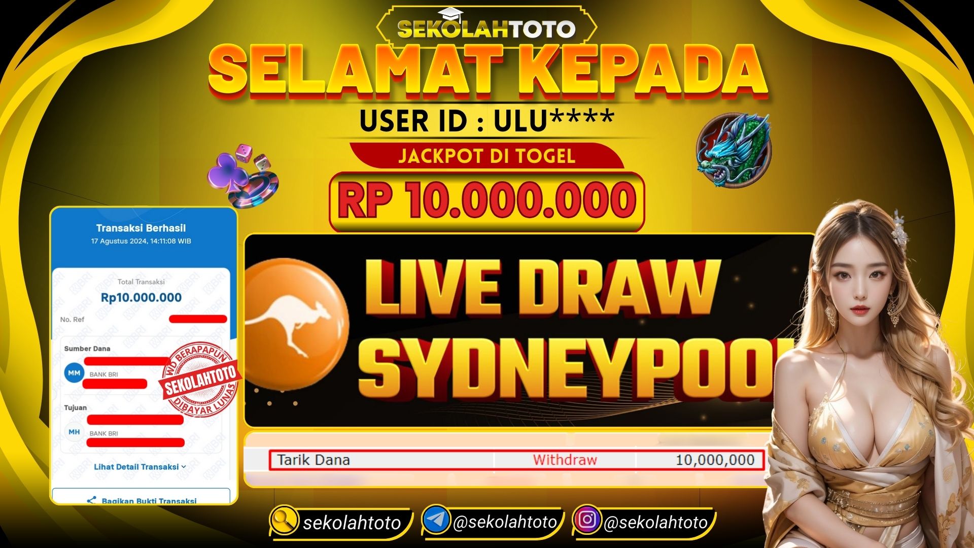 BUKTI PEMBAYARAN JACKPOT TOGEL 17 Agustus 2024 Posted by kepsektoto SYDNEY POOLS SABTU, 17 Agustus 2024 RP. 10,000,000,- Selamat Kepada Pemenang. Salam JP, Sekolahtoto ! Updated: 17 Agustus 2024 at 15:29 ◀ BUKTI PEMBAYARAN JACKPOT SLOT BUKTI PEMBAYARAN JACKPOT LIVE GAME ▶
