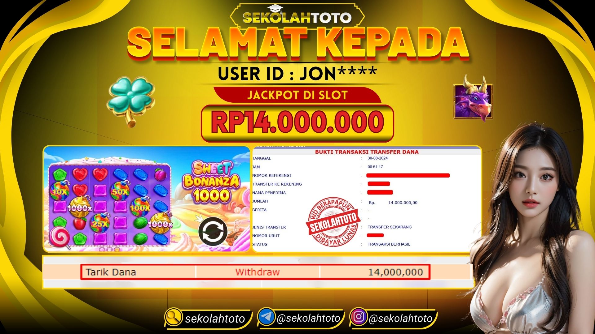 BUKTI PEMBAYARAN JACKPOT SLOT 30 Agustus 2024 Posted by kepsektoto SWEET BONANZA JUMAT, 30 Agustus 2024 RP. 14,000,000,- Selamat Kepada Pemenang. Salam JP, Sekolahtoto ! Updated: 30 Agustus 2024 at 02:35 ◀ Prediksi Togel Toto Macau Hari Ini BUKTI PEMBAYARAN JACKPOT TOGEL ▶