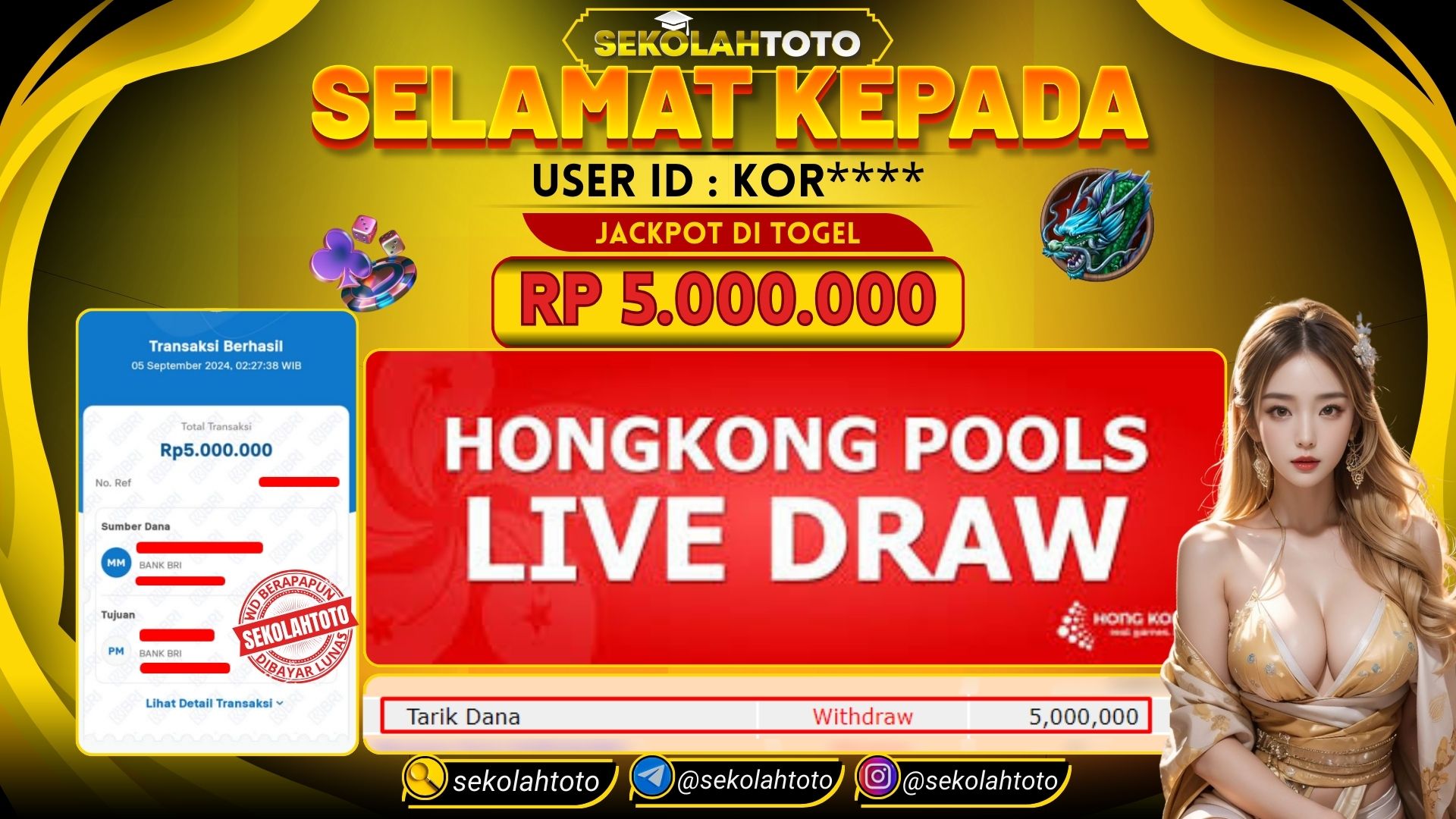 BUKTI PEMBAYARAN JACKPOT TOGEL 5 September 2024 Posted by kepsektoto HONGKONG POOLS KAMIS, 05 SEPTEMEBR 2024 RP. 5,000,000,- Selamat Kepada Pemenang. Salam JP, Sekolahtoto ! Updated: 5 September 2024 at 02:49 ◀ Prediksi Togel Toto Macau Hari Ini BUKTI PEMBAYARAN JACKPOT SLOT ▶