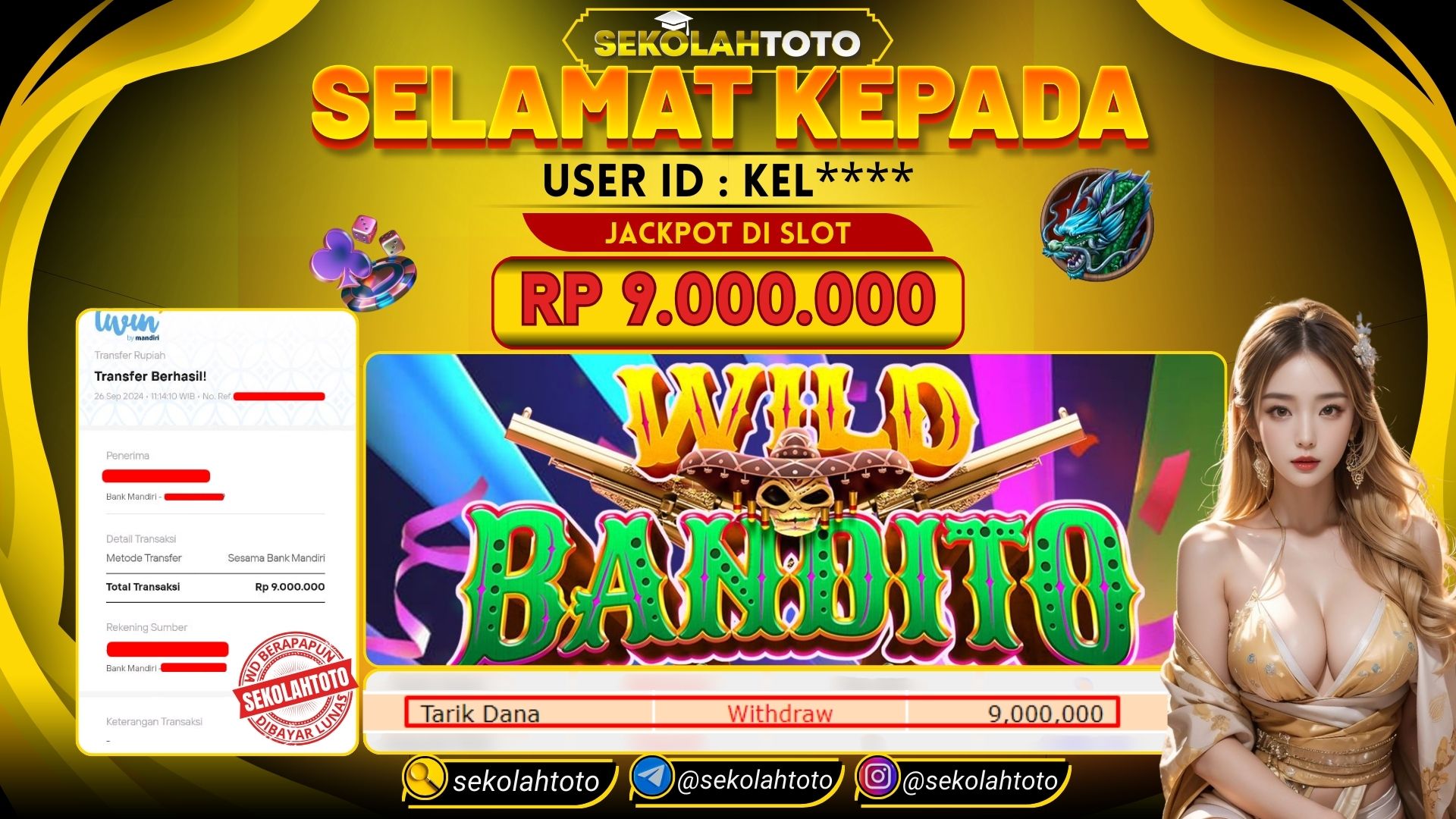 BUKTI PEMBAYARAN JACKPOT SLOT 26 September 2024 Posted by kepsektoto WILD BANDITO KAMIS, 26 SEPTEMBER 2024 RP. 9,000,000,- Selamat Kepada Pemenang. Salam JP, Sekolahtoto ! Updated: 26 September 2024 at 12:10 ◀ Prediksi Togel Toto Macau Hari Ini BUKTI PEMBAYARAN JACKPOT LIVE GAME ▶