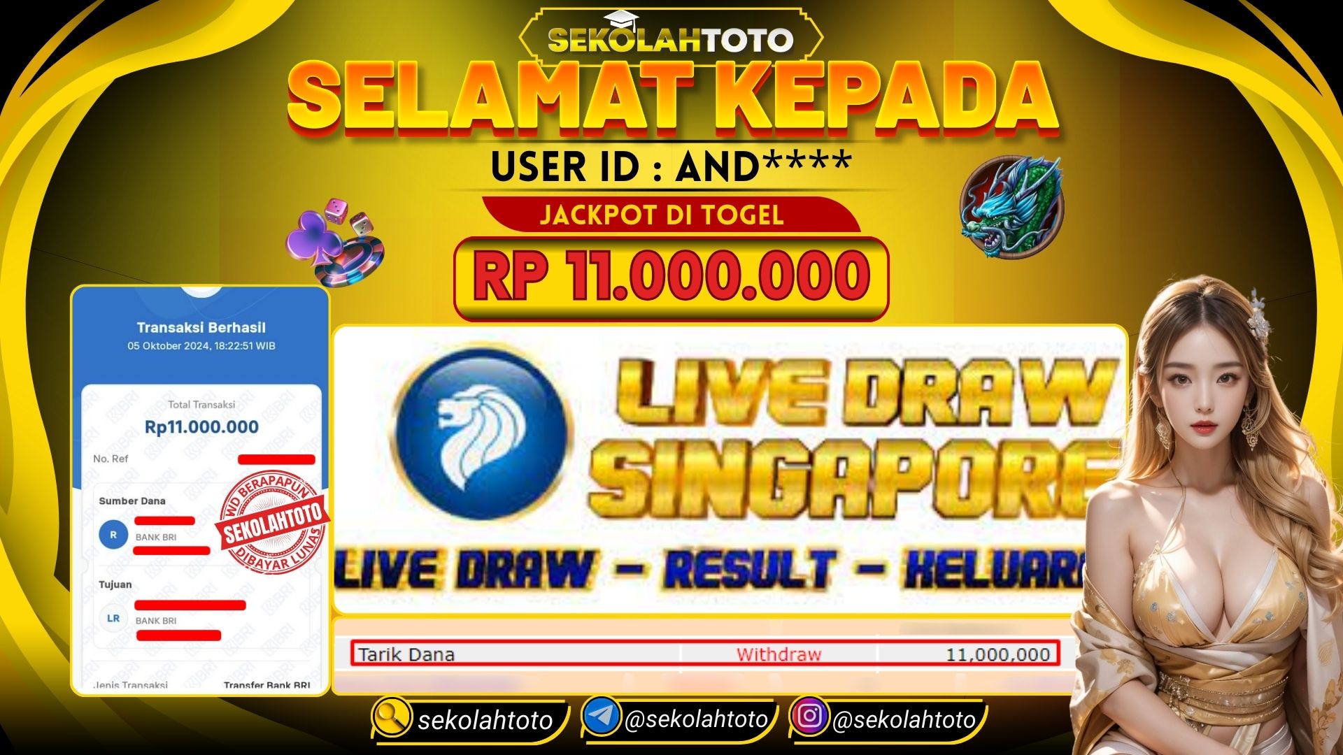 BUKTI PEMBAYARAN JACKPOT TOGEL 5 Oktober 2024 Posted by kepsektoto SINGAPORE POOLS SABTU, 5 OKTOBER 2024 RP. 11,000,000,- Selamat Kepada Pemenang. Salam JP, Sekolahtoto ! Updated: 5 Oktober 2024 at 18:39 ◀ BUKTI PEMBAYARAN JACKPOT SLOT Prediksi Togel Bullseye Pools Hari Ini ▶