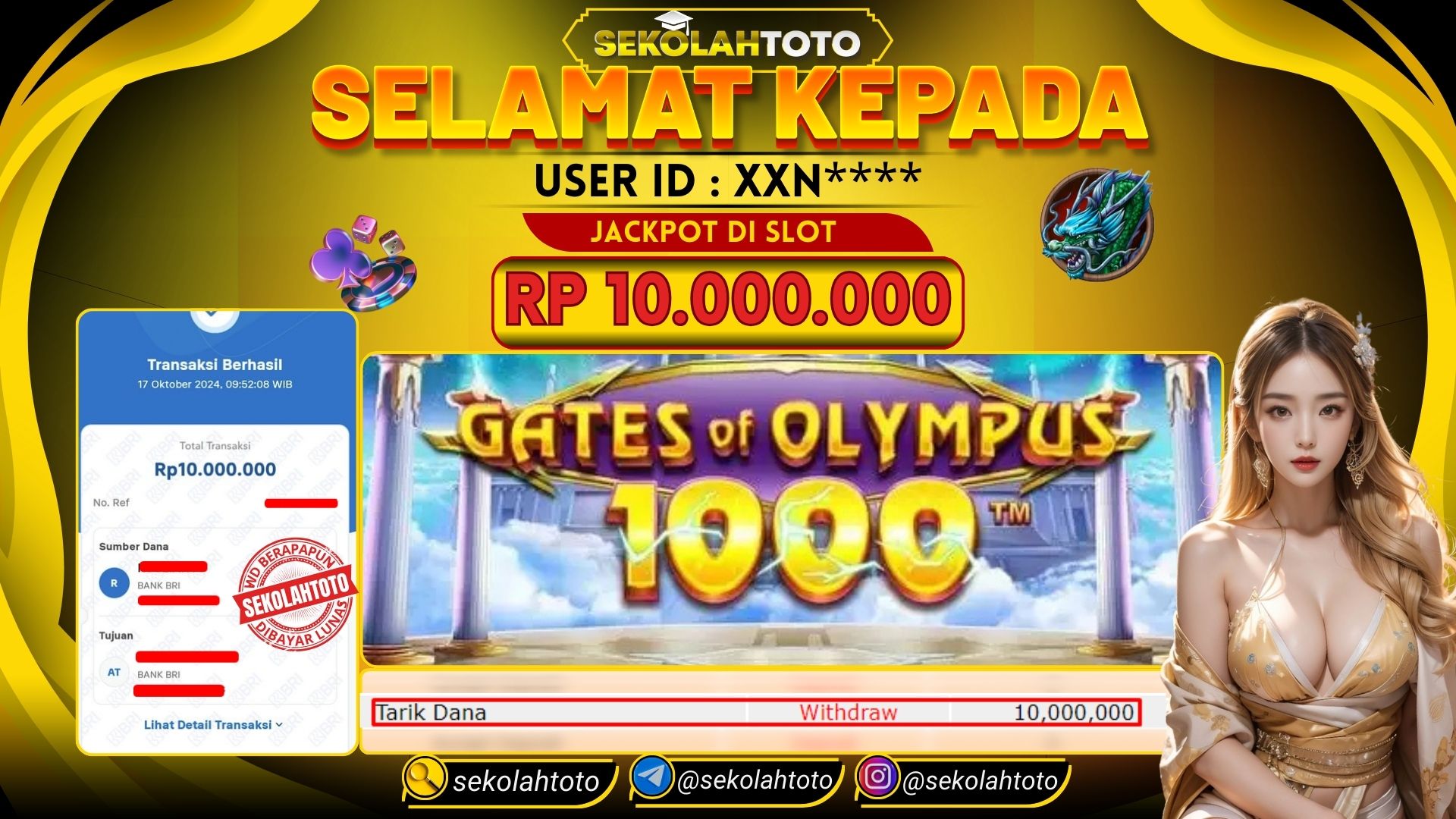 BUKTI PEMBAYARAN JACKPOT SLOT 17 Oktober 2024 Posted by kepsektoto GATES OF OLYMPUS X1000 KAMIS, 17 OKTOBER 2024 RP. 10,000,000,- Selamat Kepada Pemenang. Salam JP, Sekolahtoto ! Updated: 17 Oktober 2024 at 21:06 ◀ BUKTI PEMBAYARAN JACKPOT LIVE GAME Prediksi Togel Bullseye Pools Hari Ini ▶